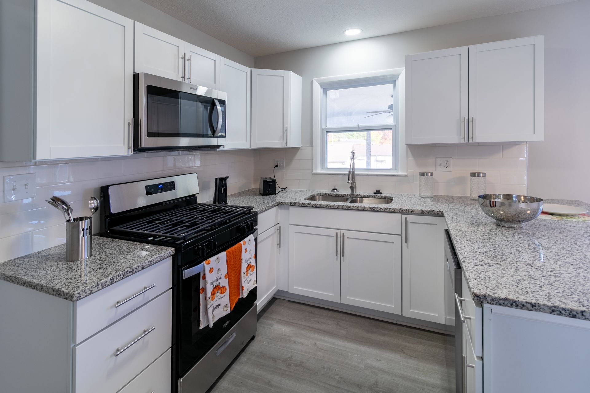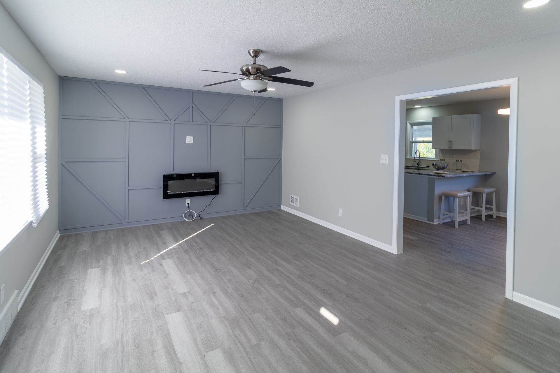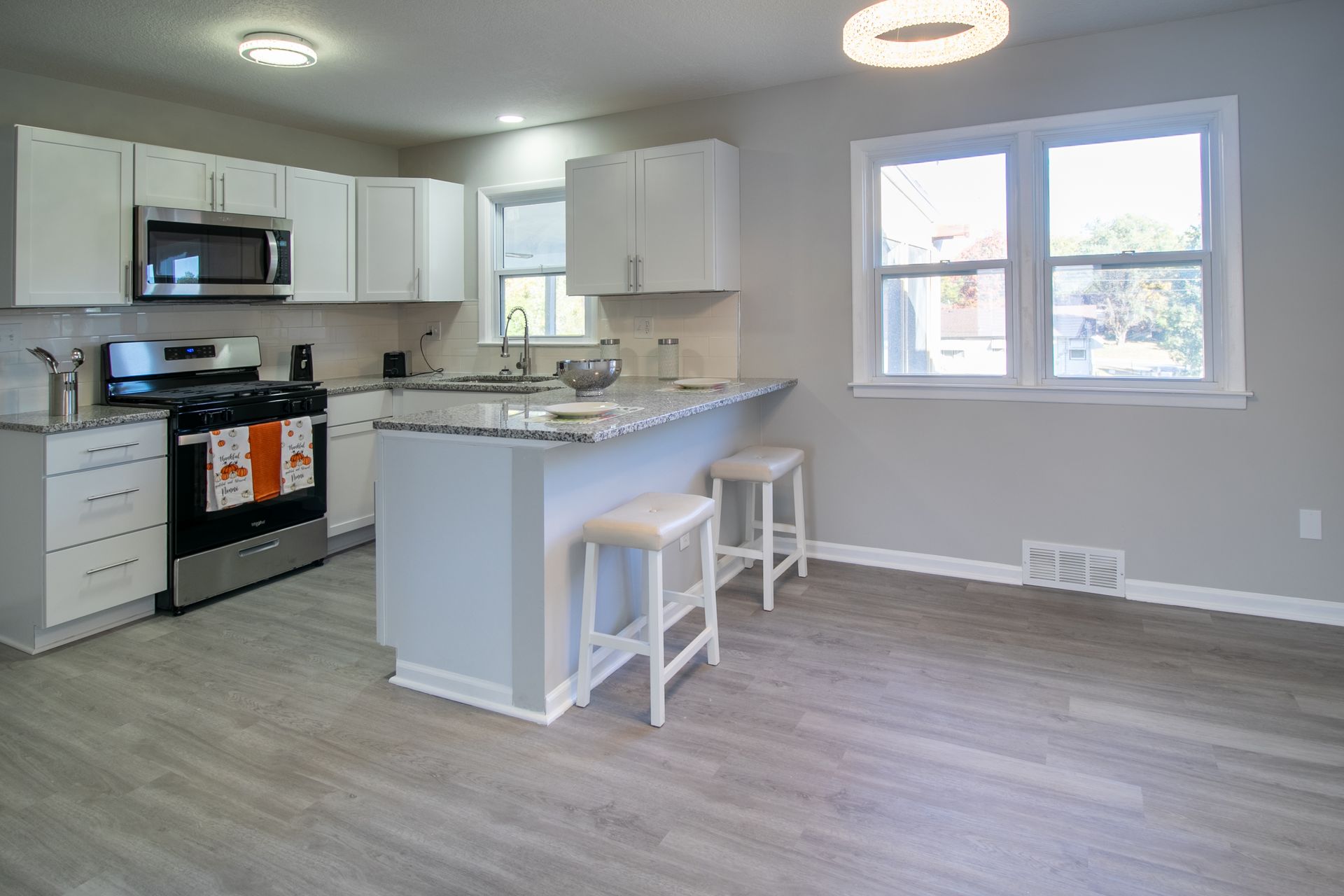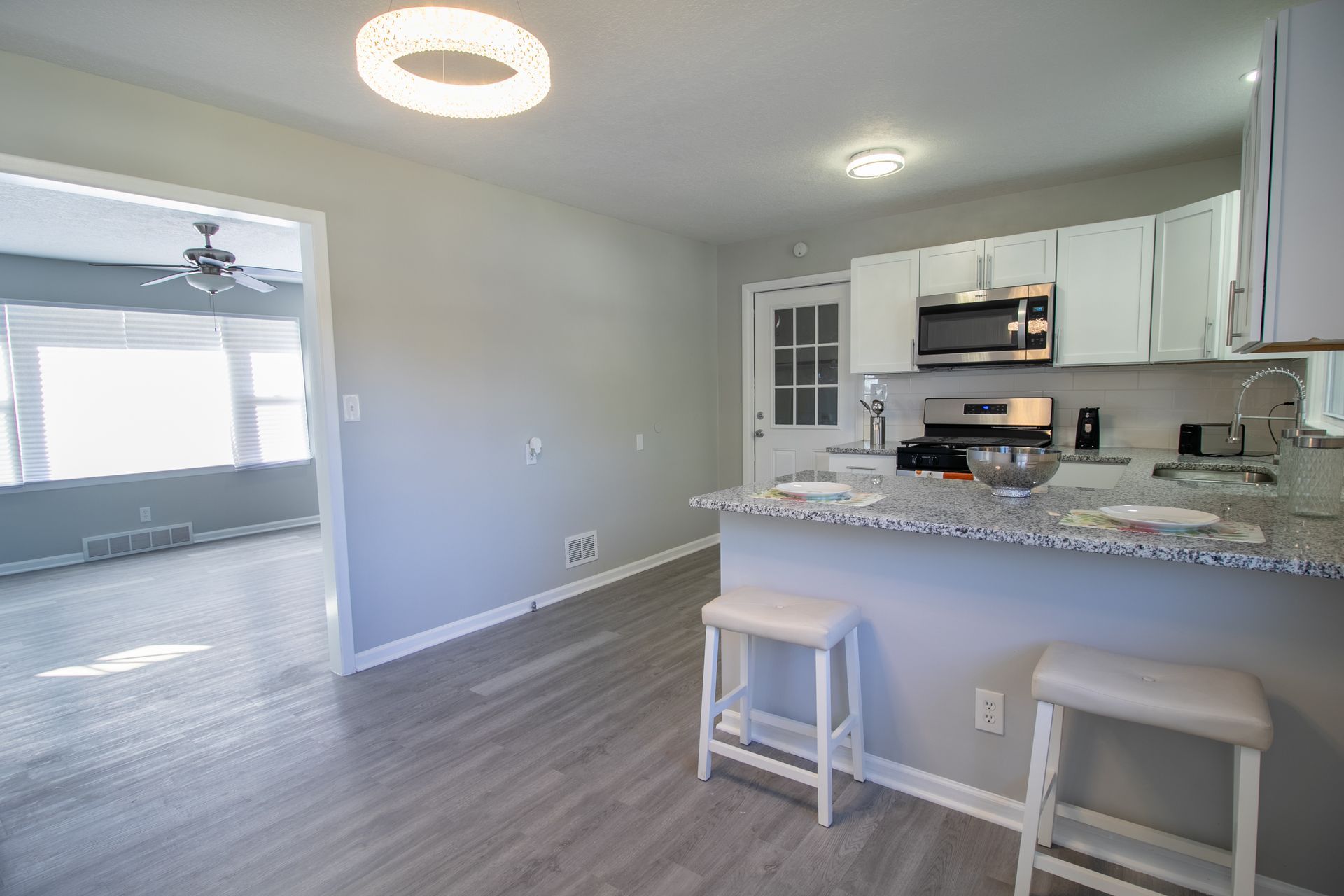 2bd/1ba, 1 car garage with sun porch. House has updated electrical, updated plumbing, new kitchen with granite countertops, new bathroom and custom living room accent wall.